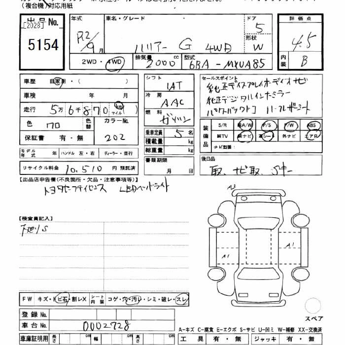 TOYOTA HARRIER 2020 г., лот № 5154