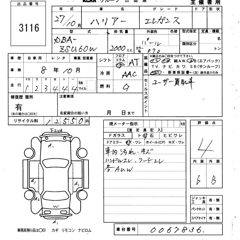 TOYOTA HARRIER 2015 г., лот № 3116