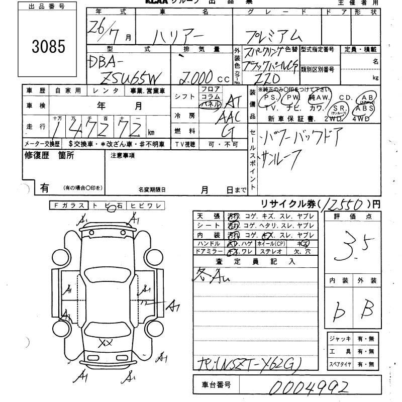 TOYOTA HARRIER 2014 г., лот № 3085