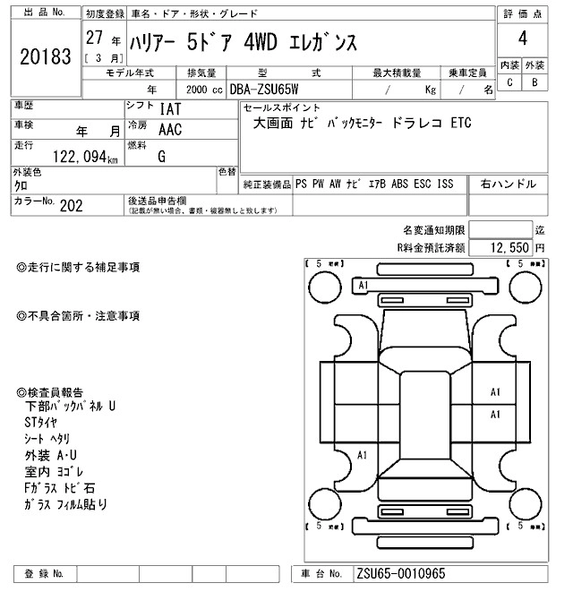 Год выпуска2015 Пробег 122 000 км КузовZSU65W Комплектация4WD