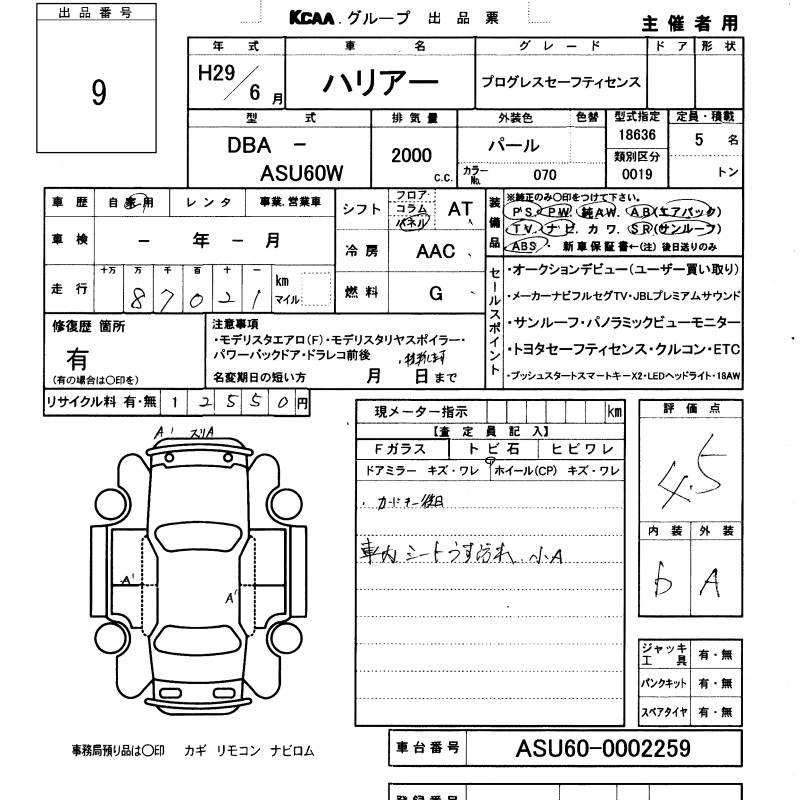 TOYOTA HARRIER 2017 г., лот № 9