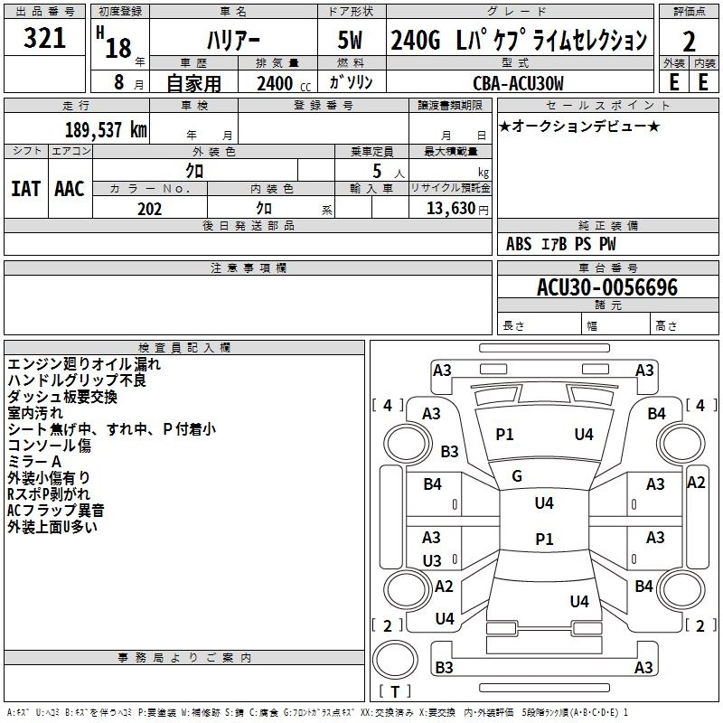 TOYOTA HARRIER 2006 г., лот № 321