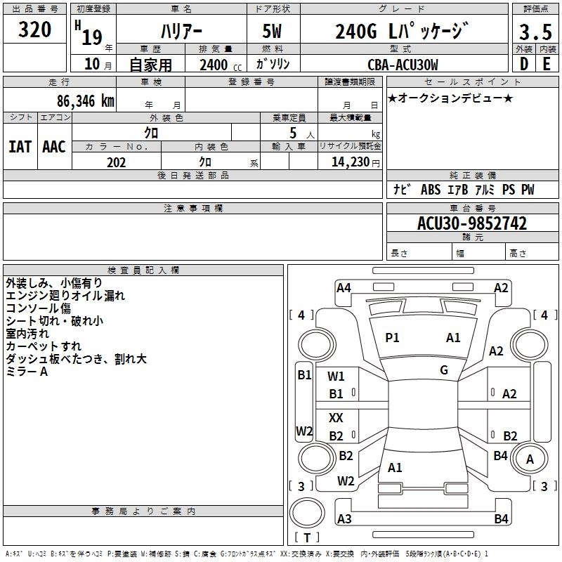 Год выпуска2007 Пробег 86 000 км КузовACU30W Комплектация240G L PACKAGE
