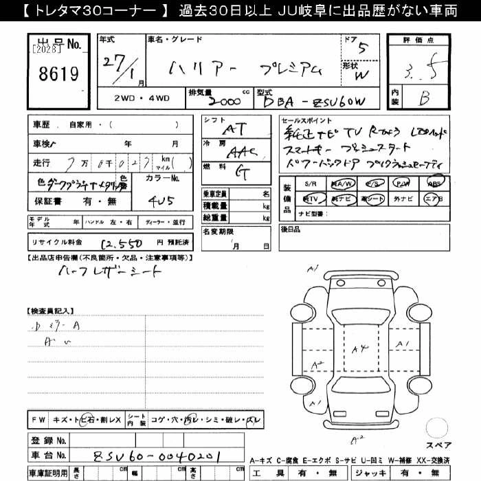 Статус выставлен на аукцион Лот 8619 Аукцион JU Gifu Дата аукциона 24.01.2026