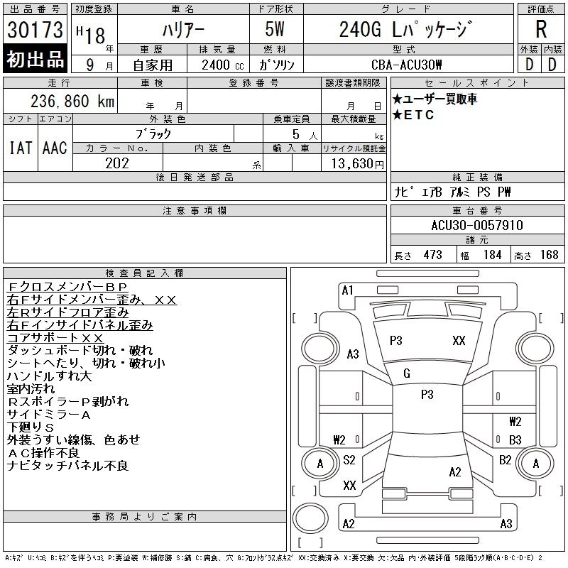 TOYOTA HARRIER 2006 г., лот № 30173