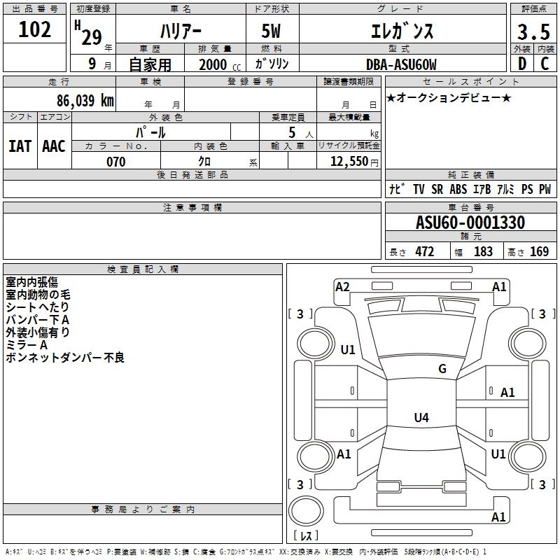 TOYOTA HARRIER 2017 г., лот № 102
