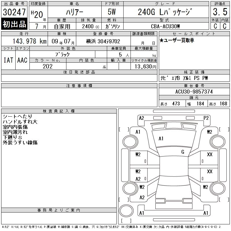 Год выпуска2008 Пробег 144 000 км КузовACU30W Комплектация240G L PACKAGE
