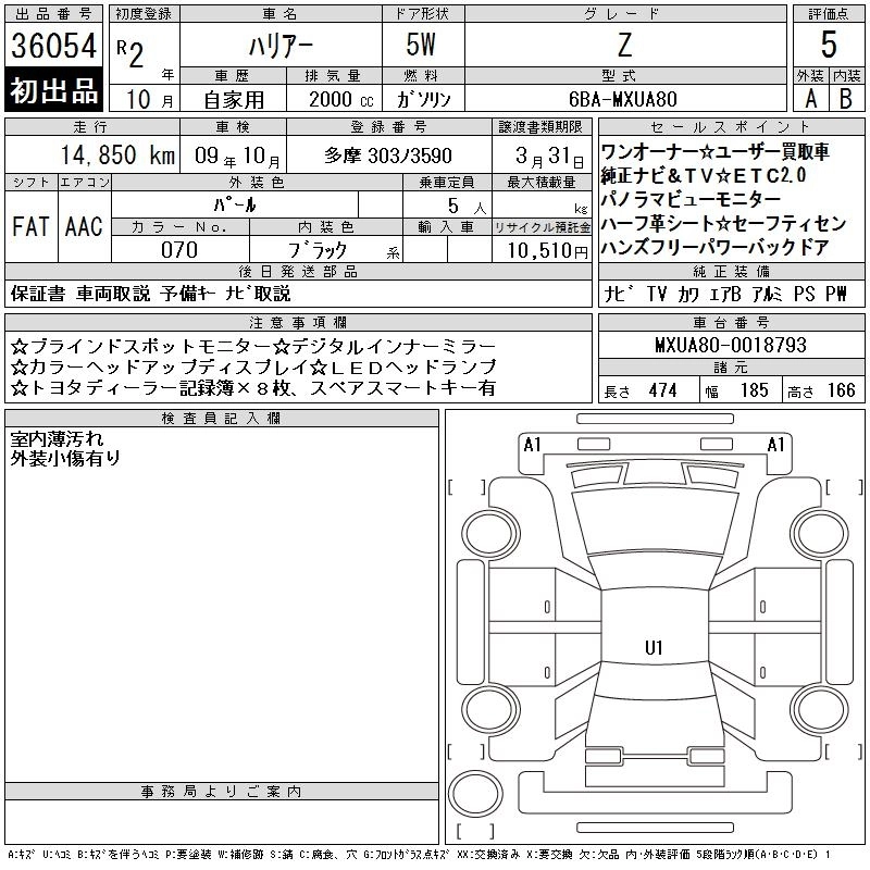 TOYOTA HARRIER 2020 г., лот № 36054