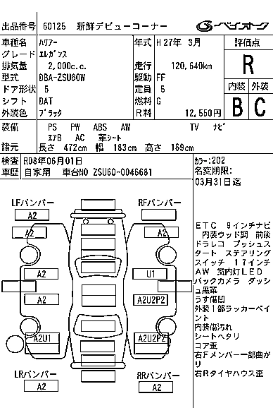 TOYOTA HARRIER 2015 г., лот № 60125