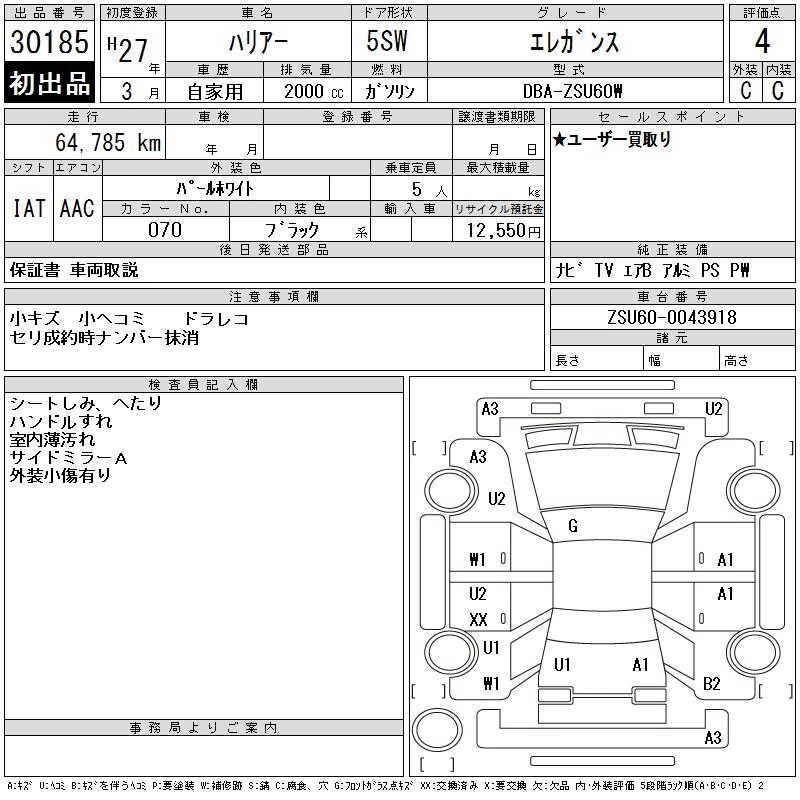 TOYOTA HARRIER 2015 г., лот № 30185