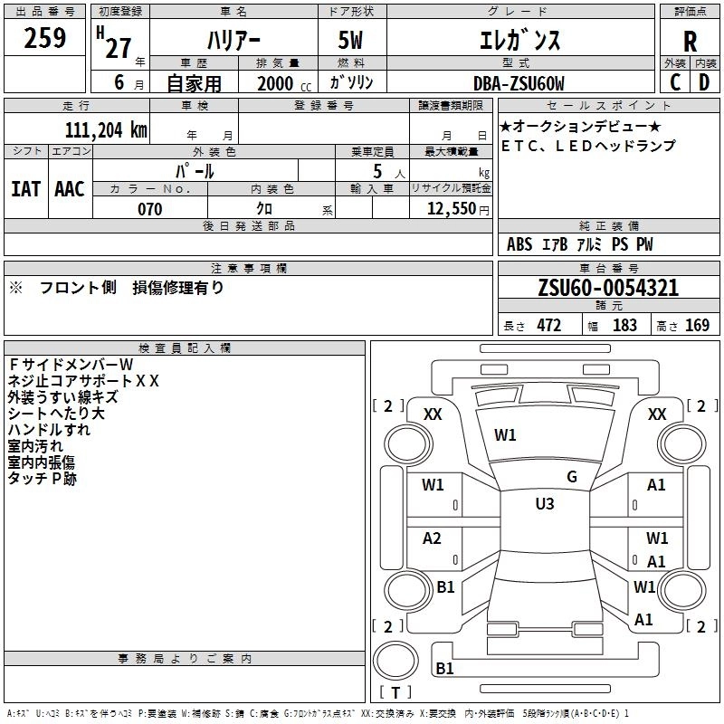 Статус выставлен на аукцион Лот 259 Аукцион TAA Chubu Дата аукциона 12.03.2026