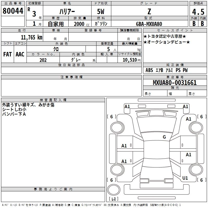 TOYOTA HARRIER 2021 г., лот № 80044