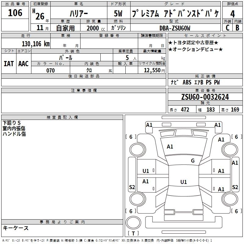 TOYOTA HARRIER 2014 г., лот № 106
