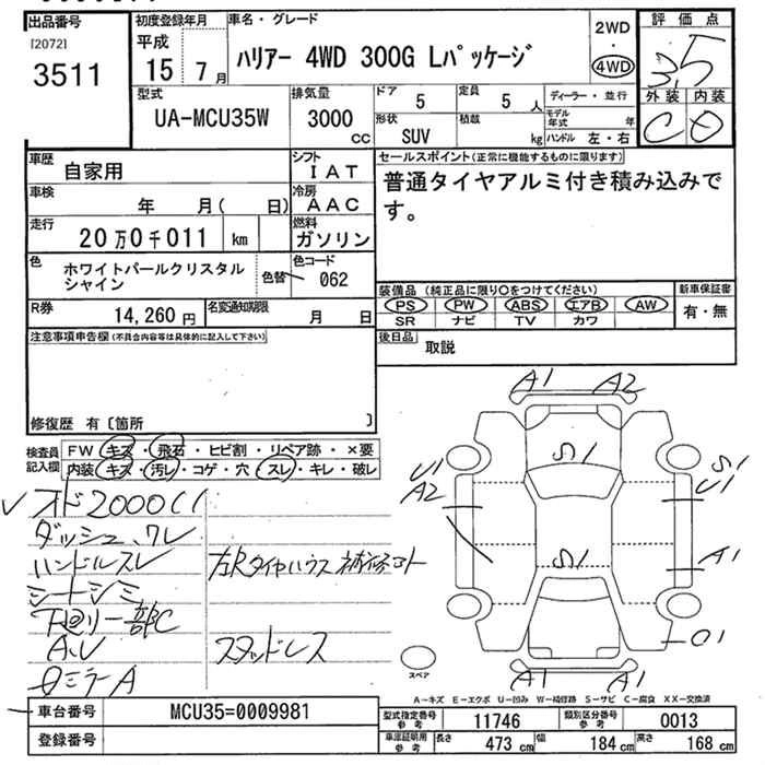 Год выпуска2003 Пробег 200 000 км КузовMCU35W Комплектация4WD 300G L PACKAGE