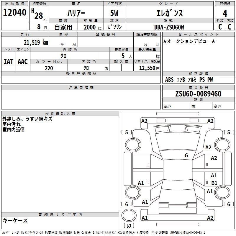 TOYOTA HARRIER 2016 г., лот № 12040