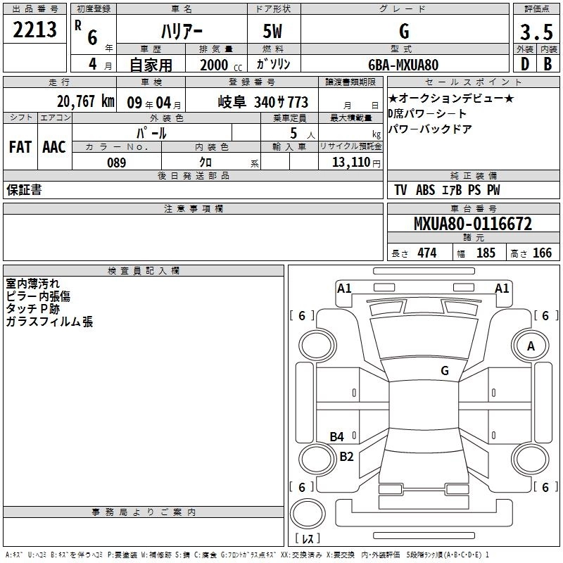 Статус выставлен на аукцион Лот 2213 Аукцион TAA Chubu Дата аукциона 12.03.2026