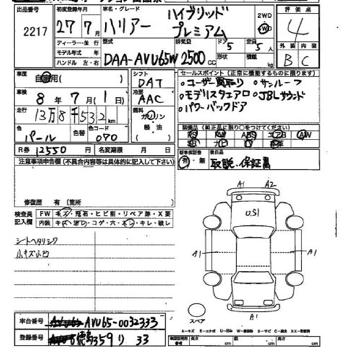 TOYOTA HARRIER 2015 г., лот № 2217