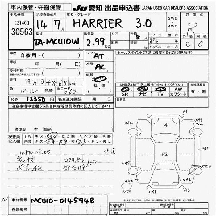 TOYOTA HARRIER 2002 г., лот № 30563