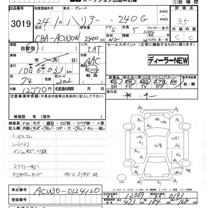 Статус выставлен на аукцион Лот 3019 Аукцион JU Chiba Дата аукциона 13.03.2026