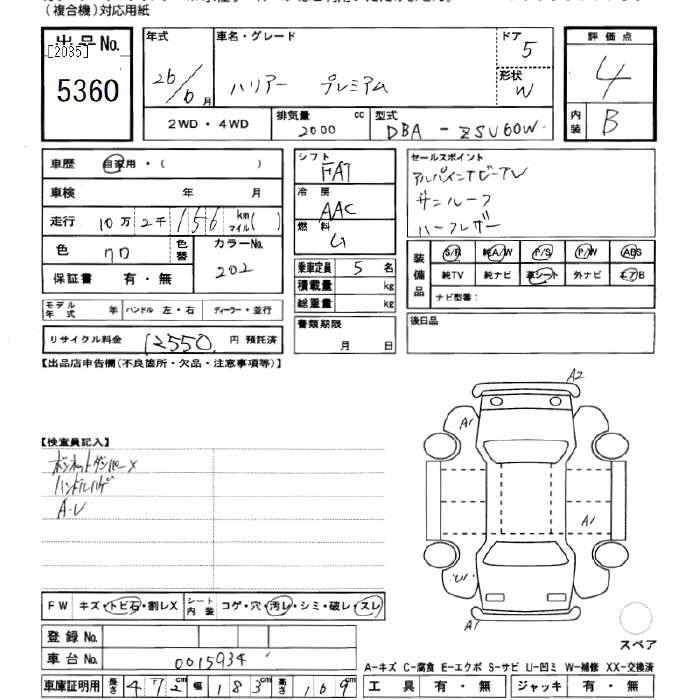 TOYOTA HARRIER 2014 г., лот № 5360