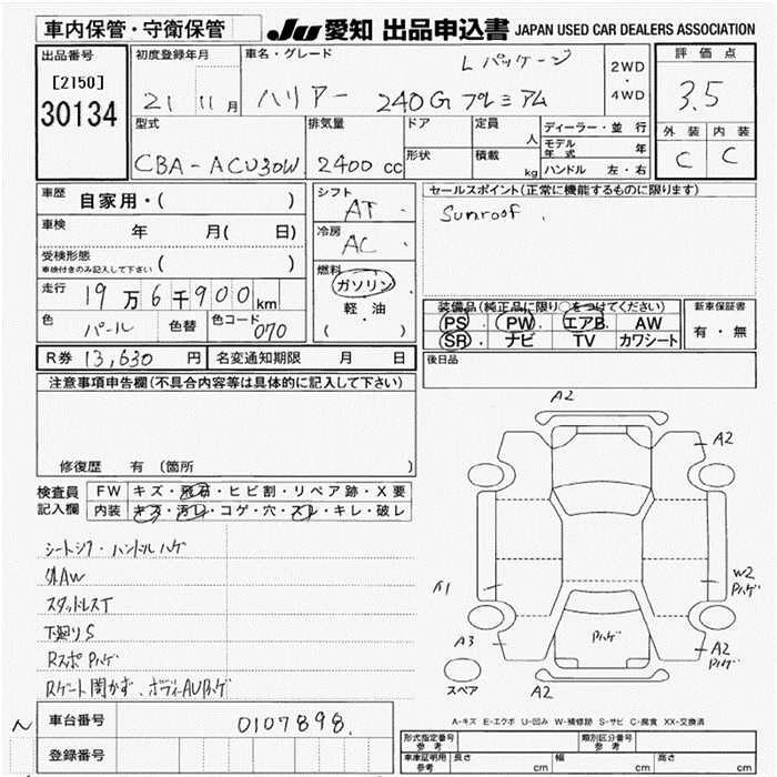 Статус выставлен на аукцион Лот 30134 Аукцион JU Aichi Дата аукциона 19.03.2026