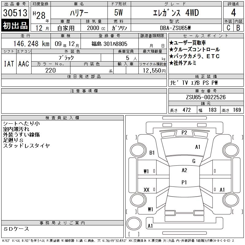 TOYOTA HARRIER 2016 г., лот № 30513