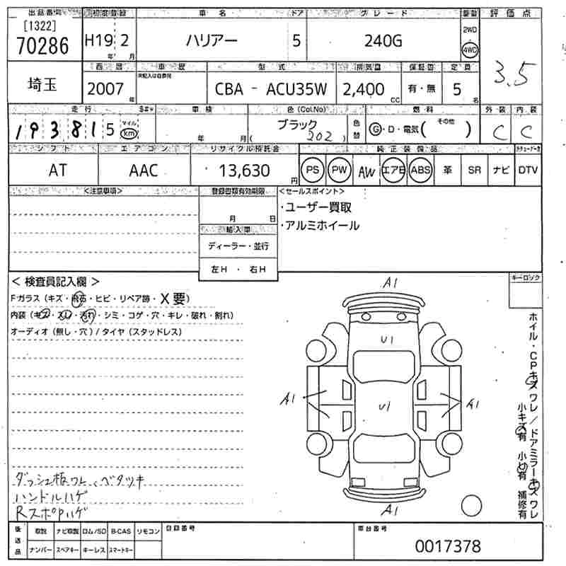 Год выпуска2007 Пробег 194 000 км КузовACU35W Комплектация240G