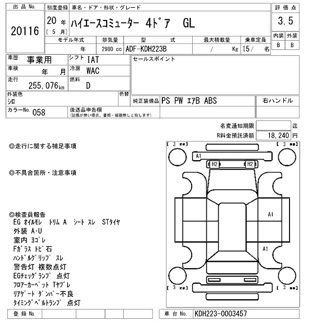 Год выпуска2008 Пробег 255 000 км КузовKDH223B КомплектацияGL
