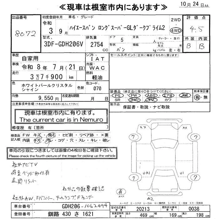 38 000 км КузовGDH206V Комплектация4WD LONG SUPER GL DARK PRIME II