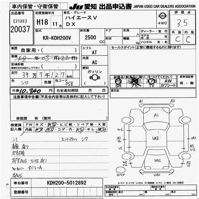 Год выпуска2006 Пробег 397 000 км КузовKDH200V КомплектацияDX