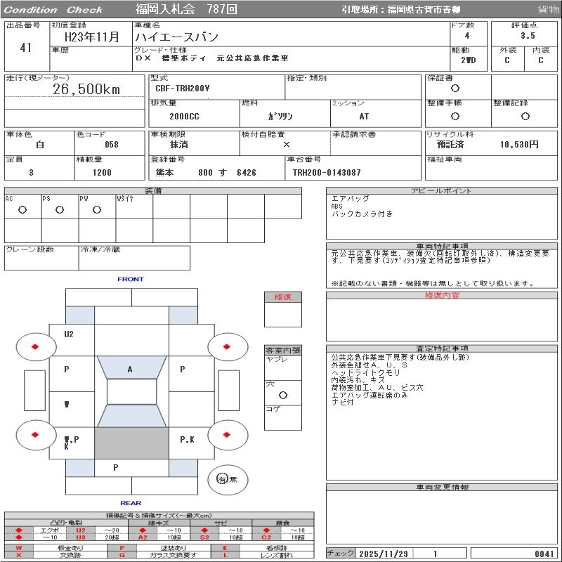 Статус выставлен на аукцион Лот 41 Аукцион ORIX Fukuoka Дата аукциона 09.12.2025