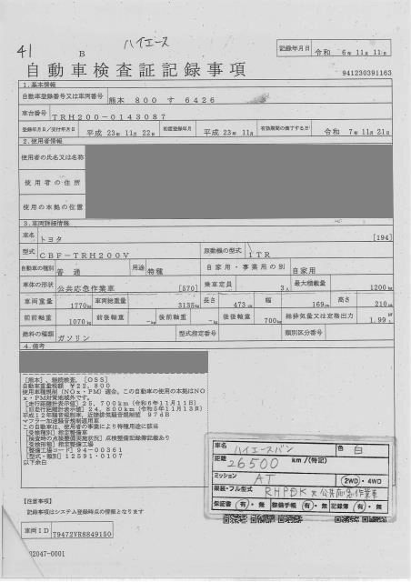TOYOTA HIACE VAN 2011 г., лот № 41