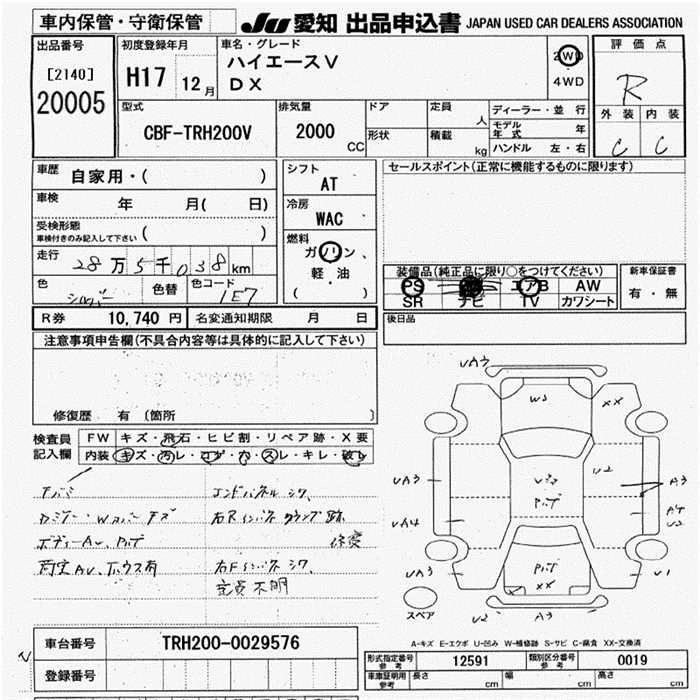 TOYOTA HIACE VAN 2005 г., лот № 20005