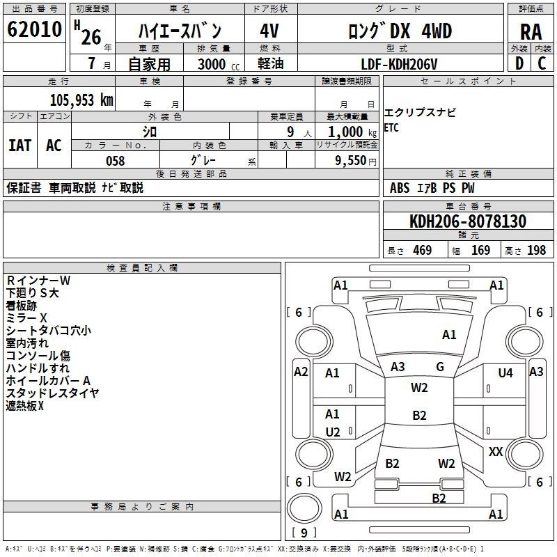 Год выпуска2014 Пробег 106 000 км КузовKDH206V Комплектация LONG DX 4WD