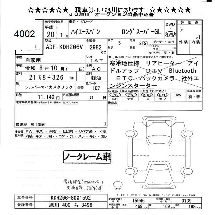 Год выпуска2008 Пробег 218 000 км КузовKDH206V Комплектация4WD LONG SUPER GL