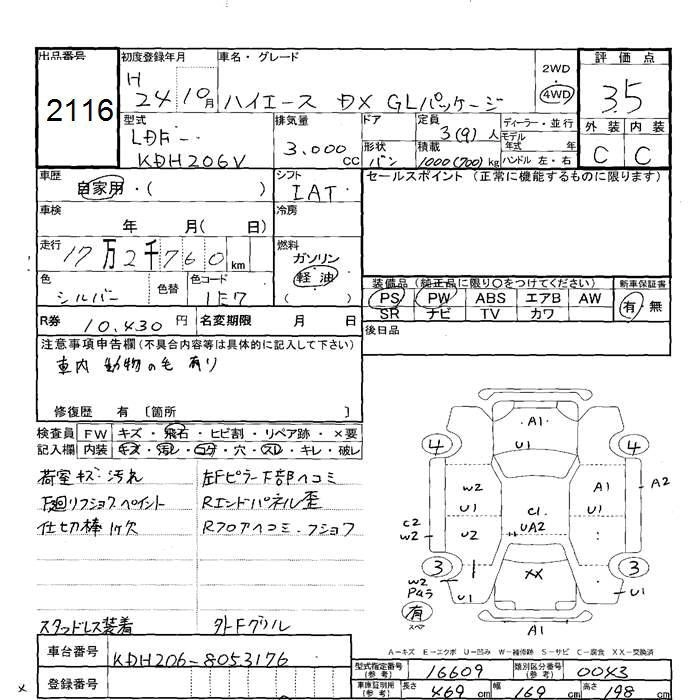 Год выпуска2012 Пробег 173 000 км КузовKDH206V Комплектация4WD DX GL PACKAGE