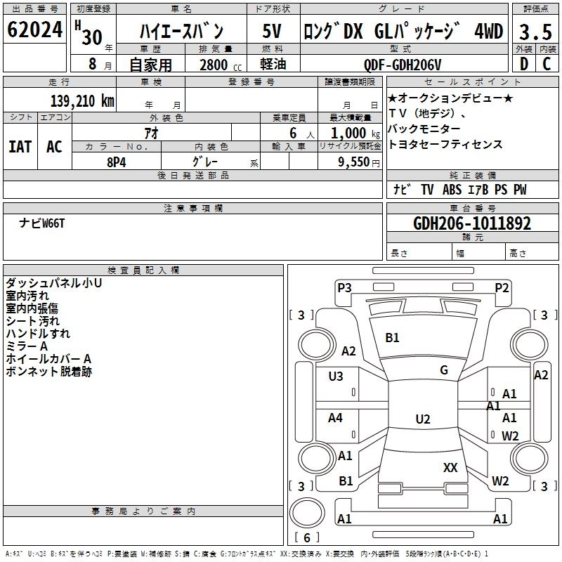 139 000 км КузовGDH206V Комплектация LONG DX GL PACKAGE 4WD