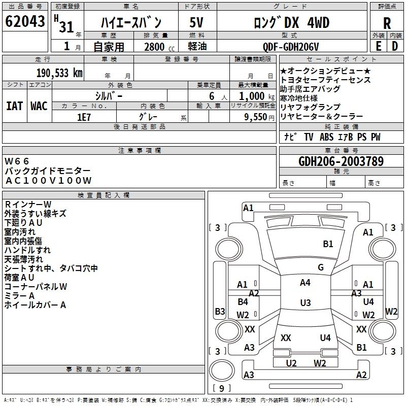 TOYOTA HIACE VAN 2019 г., лот № 62043