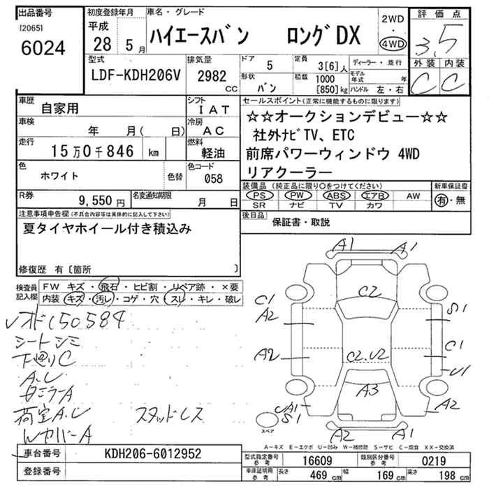 Год выпуска2016 Пробег 151 000 км КузовKDH206V Комплектация4WD LONG DX