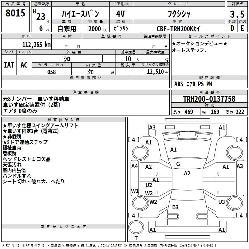 TOYOTA HIACE VAN 2011 г., лот № 8015