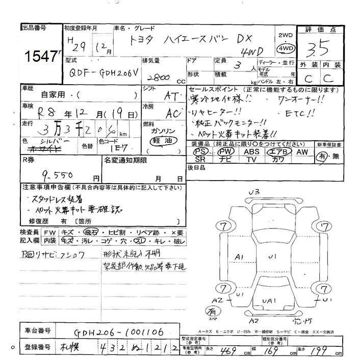 TOYOTA HIACE VAN 2017 г., лот № 1547