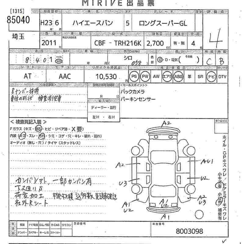 TOYOTA HIACE VAN 2011 г., лот № 85040