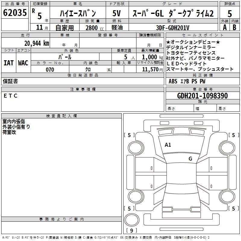 TOYOTA HIACE VAN 2023 г., лот № 62035