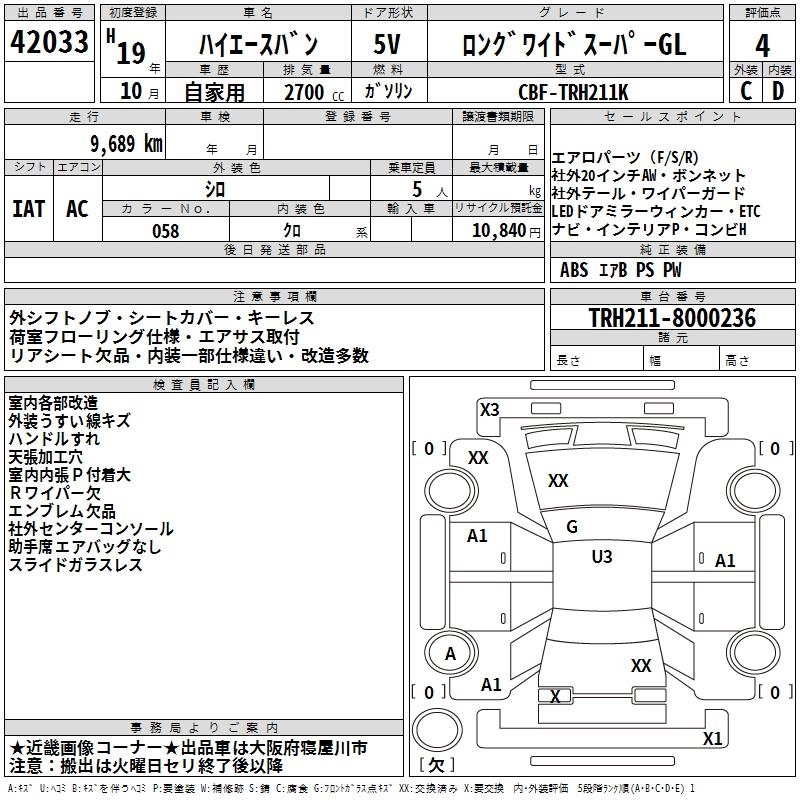 TOYOTA HIACE VAN 2007 г., лот № 42033
