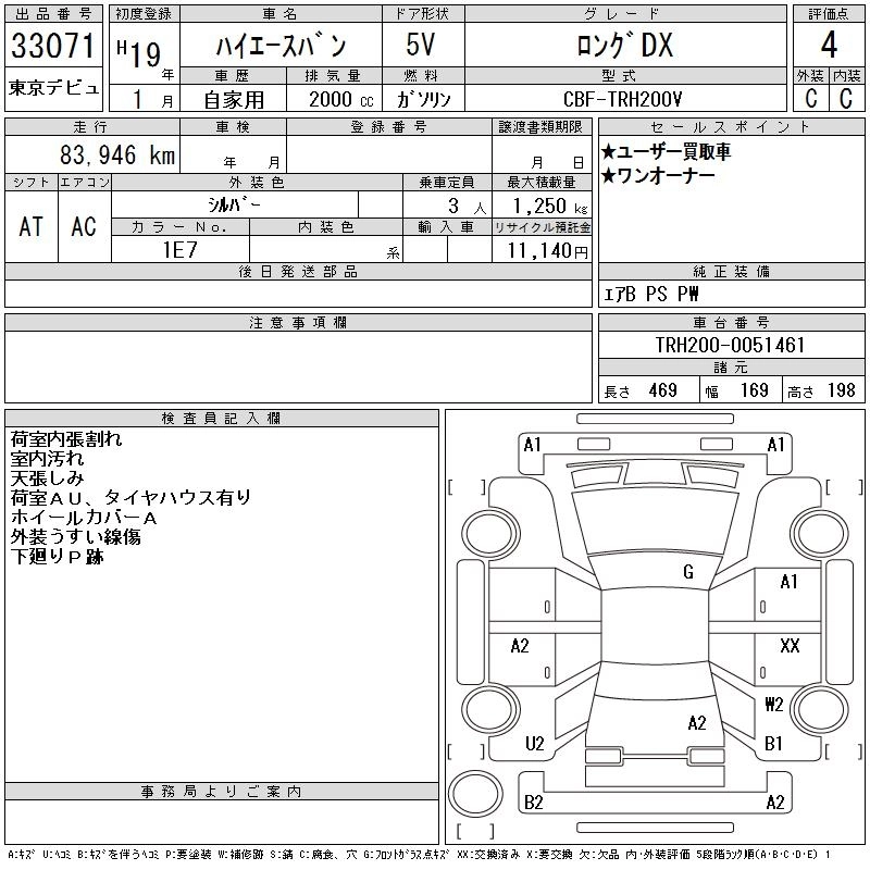 TOYOTA HIACE VAN 2007 г., лот № 33071