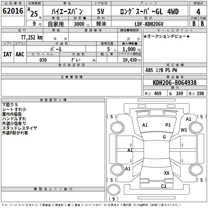 Год выпуска2013 Пробег 77 000 км КузовKDH206V Комплектация LONG SUPER GL 4WD