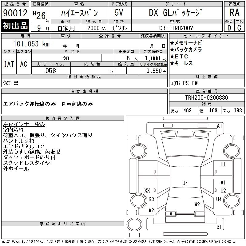 TOYOTA HIACE VAN 2014 г., лот № 90012