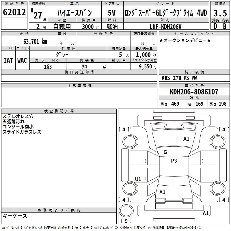 64 000 км КузовKDH206V Комплектация LONG SUPER GL DARK F4WD