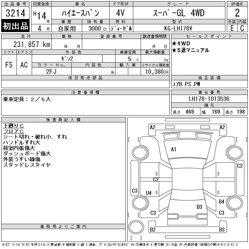 Год выпуска2002 Пробег 232 000 км КузовLH178V Комплектация SUPER GL 4WD