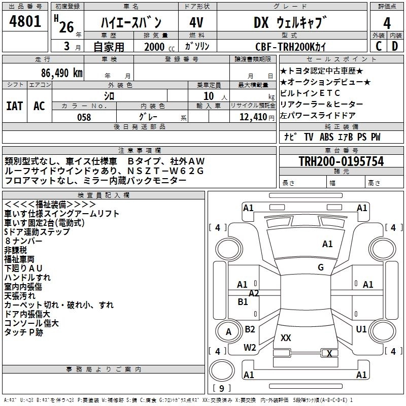 TOYOTA HIACE VAN 2014 г., лот № 4801